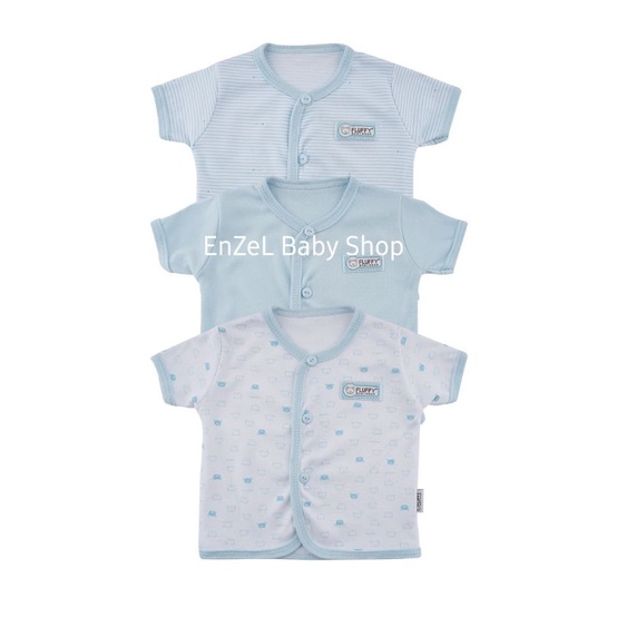 FLUFFY BAJU BAYI Tangan Pendek bis Seri Biru 3pcs size Newborn 0-3 bulan / Baju baby Fluffy / SNI