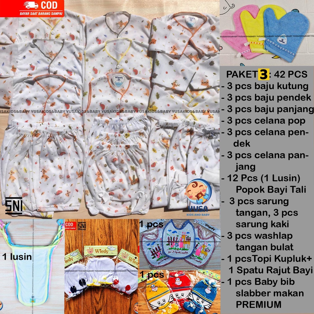42 pcs paket hemat baju bayi SNI motif Animal Yusa & perlengkapan bayi